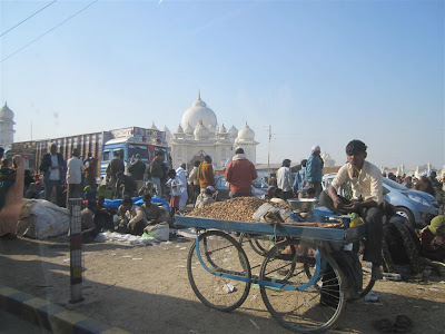 So begins one of the worst and best days of my entire life. Today we left Delhi at 6:30 AM to head for Agra, which is the site of the Taj Mahal, by car. The trip there was pure hell, and there have been few times that I have been that miserable in my life. I’m not sure I can possibly explain it in words, my pictures and video might do it justice. There was endless traffic and people. Everywhere you look, there are people. Imagine driving through west Texas, and every possible nook or cranny or horizon or random place you think someone cannot possibly be, there are people standing there. The distance is equivalent to driving from Houston to Austin, except there are people and cars and camels and carts and tractors literally on the highway, in your way. There is no such thing as right of way here. The fastest we went was probably 40 mph, and that only lasted 10 minutes or so.